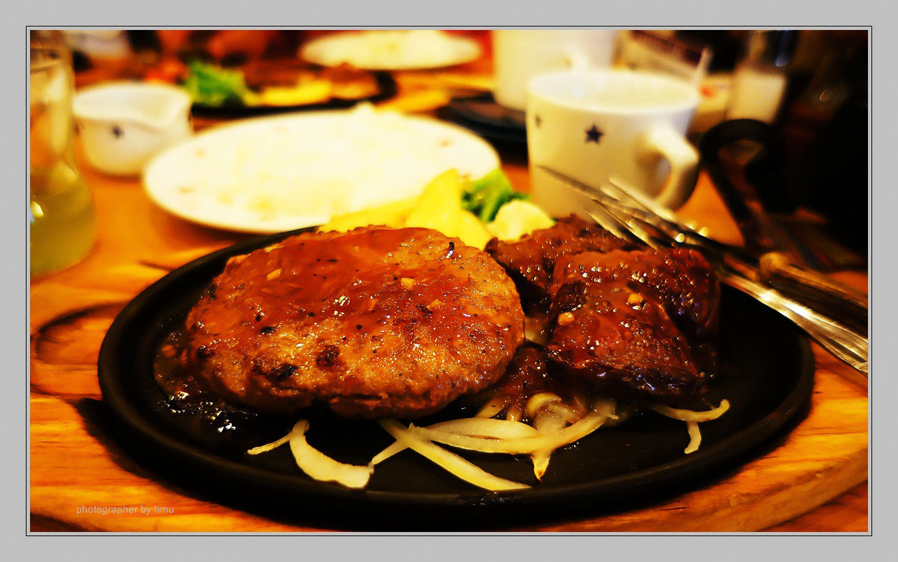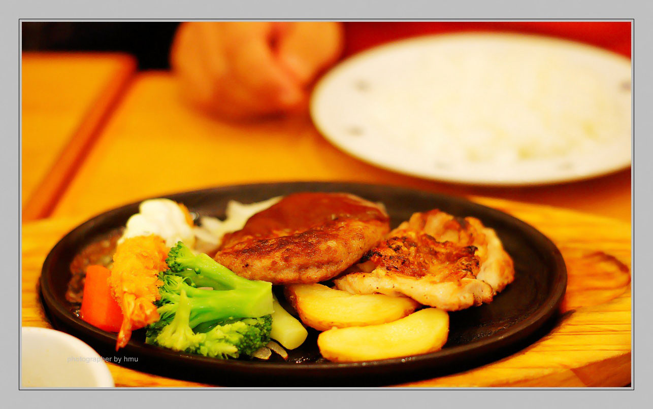 อ่าาาา... เวลาที่รอคอยมาถึงแล้วครับ ของผมเป็นชุด เบอร์เกอร์เนื้อ และสะเต็กเนื้อ พร้อมข้าว อีกหนึ่งถ้วยครับ