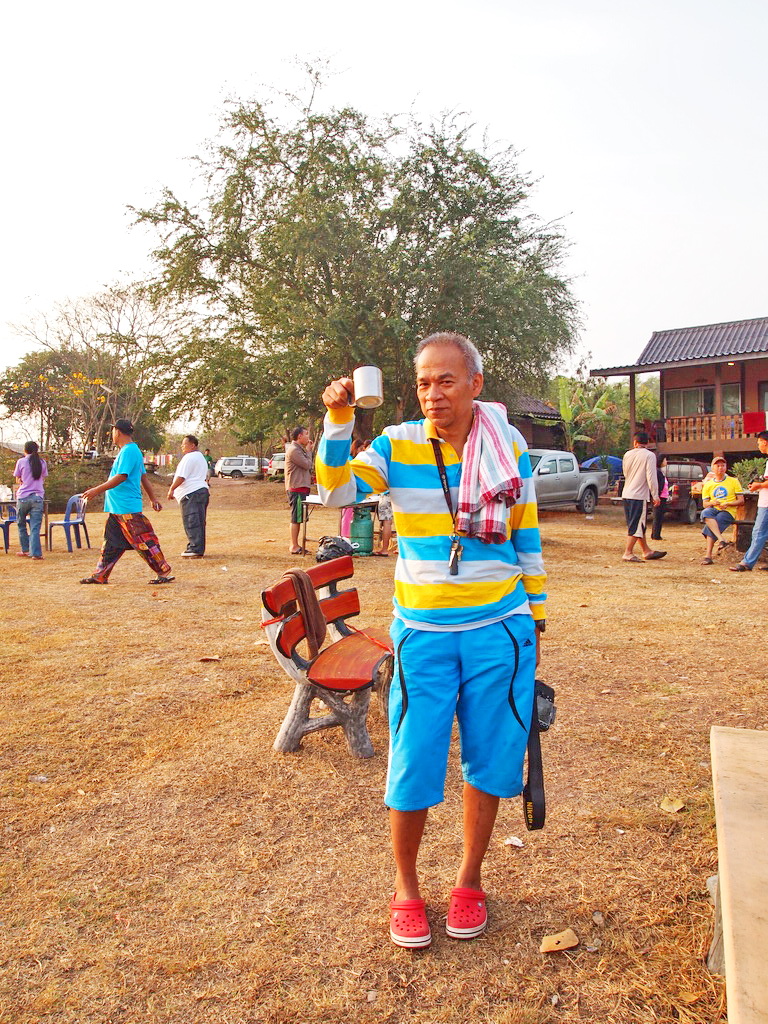 ลุงเป๋าไก่ย่าง เบื่อคน ชิมแกงเขียวหวานไก่ ไม่เลิก เลยแกล้ง ไล่ควันให้มาทางนี้ ไม่งั้นแกงไก่คงหมดหม้อ..