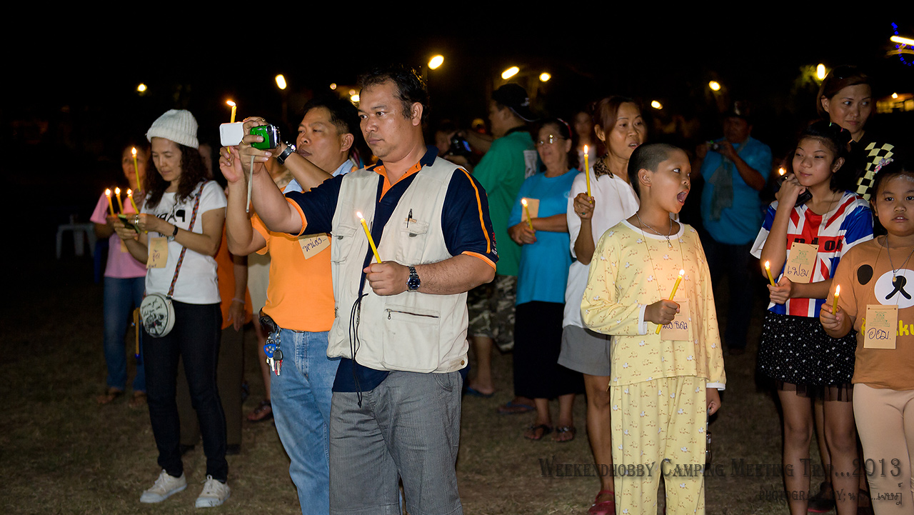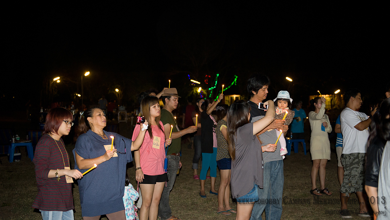ร่วมกันจุดเทียน พร้อมร้องเพลงสามัคคีชุมนุม