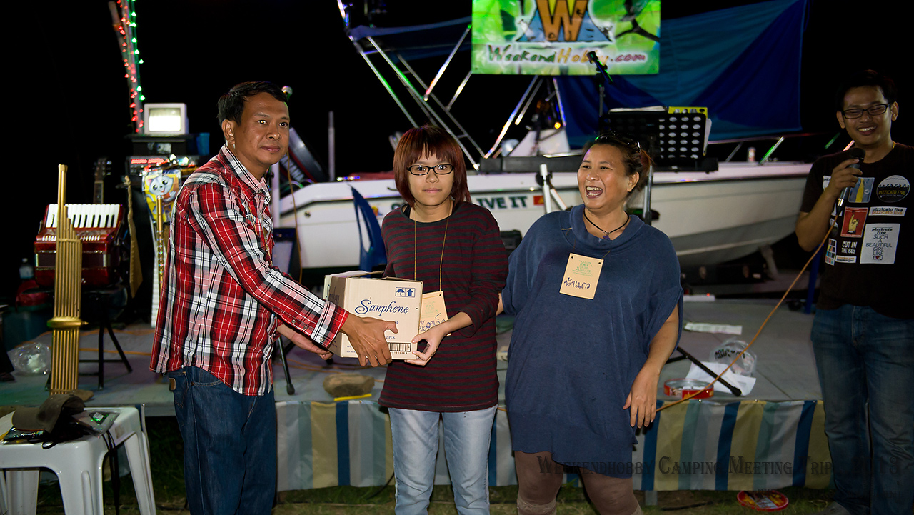 หลังจากนั้นก็จับรางวัลให้กับผู้ที่มาร่วมงาน จับได้แจกเลย เริ่มจากรางวัลน้ำมันเครื่อง