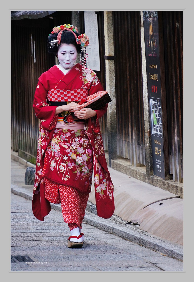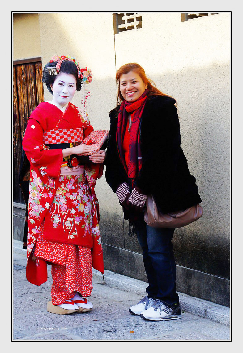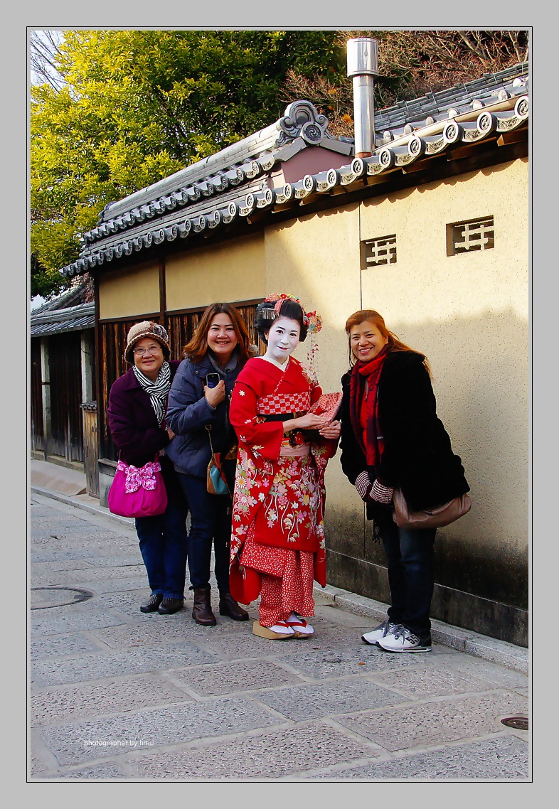 เกอิชา หรือที่ไกด์ของเราบอกว่า คนญี่ปุ่นชอบเรียกไมโกะซัง สังเกตุมือแนบ ปากเม้มนะครับ ผ่านการฝึกฝนมาอย่างดี