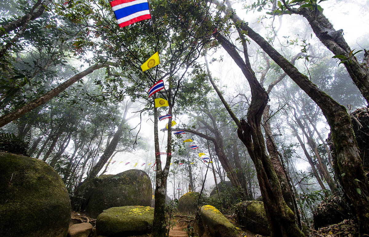 อากาศยังไม่ร้อนมีหมอกด้วยเย็นสบายๆค่อยๆเดินขึ้นเขาทางลำบากหน่อย