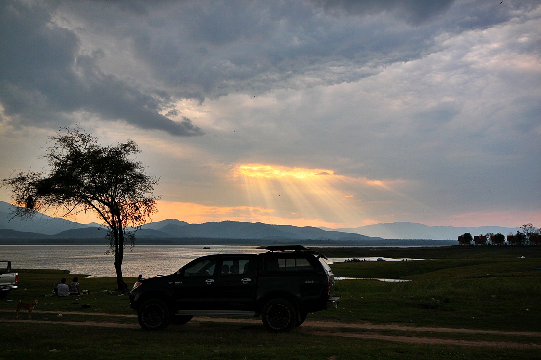 พวกเราใช้เวลาอยู่ที่น้ำตกไซเปอร์นานพอควร รีบบึ่งรถมาเพื่อชมพระอาทิตย์ตกที่ อ่างเก็บน้ำทับเสลา