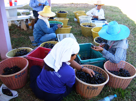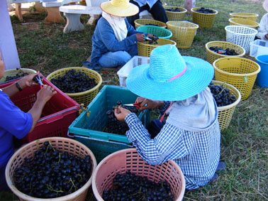 คำตอบที่ 2 คนงานกำลังเก็บองุ่น และส่วนหนึ่งก็กำลังนั่งคัดขนาด อยากกินก็เลยไปถามราคา โลละร้อยกว่า ปรากฎว่าไม่มีใครจ่ายตัง แป่ววว..ไปก่อนละ