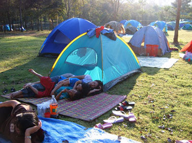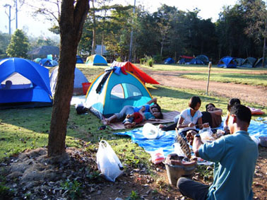 คำตอบที่ 8 อีกวันนึง ย้ายมาที่สวนห้อมย่ะ ไม่เคยนอนซ้ำที่ อิอิ คนเยอะมากๆ เต้นท์หลากสี