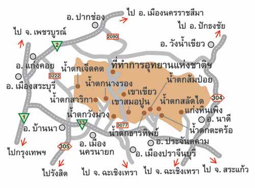 จากเขาแผงม้า มาที่หน้าด่านเก็บค่าทำเนียมเขาใหญ่ แต่ทางเป็นทาง รพช. ยางมะตอย รถวิงสวนกัน ทางเข้าหมู่บ้านประมาณ 2 - 3 หมู่บ้านแต่มีป้ายบอกทาง ระยะทาง 80 - 90 กิโลเมตร เมื่อถึงสามแยกหน้าเขาใหญ่ เลี้ยวซ้ายจะไปด่านเก็บเงิน ให้เลี้ยวขวาไปทาง อ.ปากช่อง ประมาณ ตำบลหมูสี (ไม่แน่นใจ) จะมีทางเลี้ยวซ้ายบอกว่าไปน้ำตกหมวกเหล็ก ในแผ่นที่ก็จะเป็นทางที่ไม่มีเลขที่ถนน แล้วไปออกที่ถนนมิตรภาพ ( ใกล้กลับ เลข 2 ) ที่เป็นทางลงมอ ก่อนผ่านหมวกเหล็ก แต่ทางจากแยก ตำบลหมู่สี เป็นหมวกเหล็กผมจำไม่ได้ว่า กี่กม. ผมว่าจากเขาใหญ่ให้ใช้ทางหมายเลข 2090 เมื่อถึง ถ.มิตรภาพ(2) ก็ขับได้สบาบทางไฮเวท์แล้วครับ