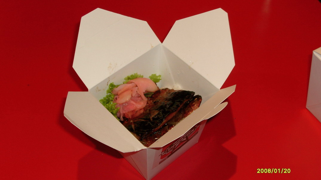 คำตอบที่ 7 เสาร์ที่แล้วมีโอกาสได้ไปเที่ยว บางแสน เห็นบูทขายอาหารเล็กๆสีแดงอยู่ข้างทางถนนลงหาดบางแสน เลยห้างแหลมทอง ก่อนถึงตลาดนัดวังมุขแลนด์ ชื่อร้าน chopstick (ช็อบสติ๊ก) เลยแวะเข้าไปชมซะหน่อย เห็นบอกว่าร้านเพิ่งเปิดยังไม่ค่อยมีคนรู้จักดูท่าทางเหมือนเป็นร้านไดรฟอิน บูทสีแดงสวยสะดุดตา ทดลองเมนูข้าวญี่ปุ่นหน้าปลาซาบะ กับสลัดไก่ย่างเนื้อนุ่ม ไก่หมักซอสย่างบนเตาถ่านก่อนจะนำมาใส่ในสลัดผักรวมอร่อยมั่กๆ.... ปลาซาบะสดๆหมักซอสย่างบนเตาถ่านสุกกำลังดีหน้าตาน่ากิน ราดซอสเทอริยากิสูตรพิเศษ กินกับข้าวญี่ปุ่นร้อนๆ พร้อมขิงดองเนื้อชุ่มเข้ากับปลาซาบะจริงๆ แถมแพคเกจเค้าเป็นกล่องกระดาษดูสะอาด และแปลกตาดี ไม่เคยเห็นมาก่อน เวลากินต้องกินด้วยตะเกียบแบบฉีกที่แถมมาด้วย กินไปเพลินไป ยิ่งถ้าซื้อใส่กล่องไปนั่งกินริมหาดบางแสนด้วยละก็ ..เหมาะมากๆ ..ไปบางแสนคราวนี้ไม่เสียเที่ยวซะทีเดียว