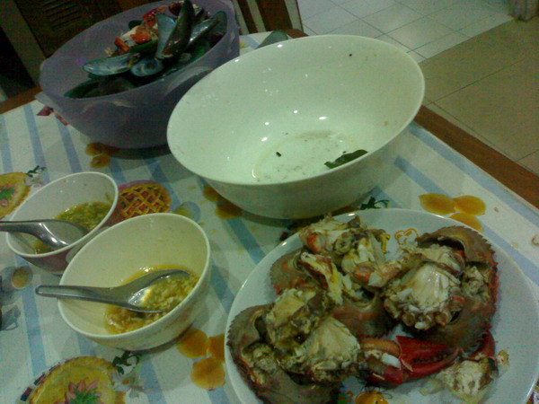 คำตอบที่ 6 มาเริ่มทำอาหารกันดีกว่าวันนี้ผมจะทำหอยกระพงผัดโหระพา ปูนึ่ง เกระพงนึ่งซีอิ๊ว เนื้อสันนอกราดบูยอง งั้นเก็บปลาหมึกเข้าตู้ไปก่อนน่ะ ทำปูกับหอยทานเล่นก่อน ล้างหอยเสร็จก็ใส่หม้อใส่เครื่องต้มยำใส่น้ำครึ่งแก้วตั้งบนไฟเลยยยย