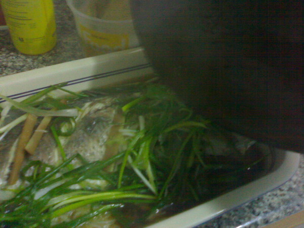 คำตอบที่ 33 พอเดือดราดลงไปทุกส่วนของปลาค่อยๆราด ตามด้วยตั้งกระทะให้ร้อนจัดใส่น้ำมันพืชให้ร้อนมากกกกราดไปที่หัวปลา