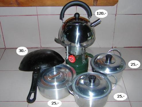 คำตอบที่ 22 เห็นเขามีคุ๊กกิ้งค์เซ็ทราคาชุดละ 3000-4000 บาท ก็อยากมีกะเขามั่ง พอมามองกะเป๋าตังค์ โอ้เราช่างอาภัพนัก อย่ากระนั้นเลย ชวนแม่อีหนูไปเดินดูแถวตลาดนัด ขอตามรอยพ่ออย่างพอเพียงละครับ ชุดนี้ออกแค๊มปิ้งค์รองรับได้ 4-5 คนสบาย ๆ ครับ 555555555