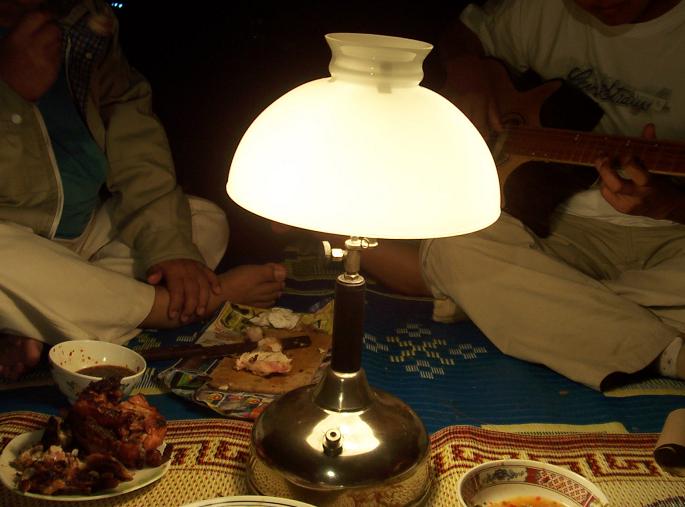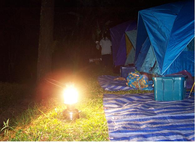 ...ส่วนในเต้นท์ ใช้ไฟฉายแบบหลอดนีออน 10 วัตถ์(หาหลอดเปลี่ยนยากจริงๆ)....ไม่ควรจุดตะเกียง หรือเทียนไขในเต้นท์เป็นอย่างยิ่ง...