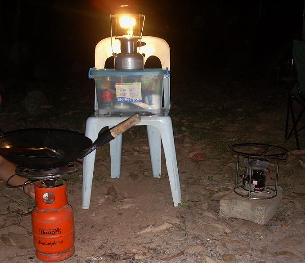 แต่ส่วนมากผมจะติดตะเกียงรั้วไปด้วย หาที่แขวนหน้าเต้นท์ (อันนี้เป็นความชอบส่วนตัว แบบว่าบรรยากาศเหมือนสมัยเด็กๆ....)หรี่ไฟไว้พอมองเห็น ดึกๆจะได้เดินกลับเต้นท์ตัวเองถูก ...ปัญหาของตะเกียงรั้วคือเวลาเอาใส่ในรถจะมีกลิ่นน้ำมันหายใจหายคอไม่ออก(รถผมเป็นแวกอน) แก้ไขโดยใช้กระป๋องพลาสติกแบบมีฝาปิด กันไว้อีกชั้น