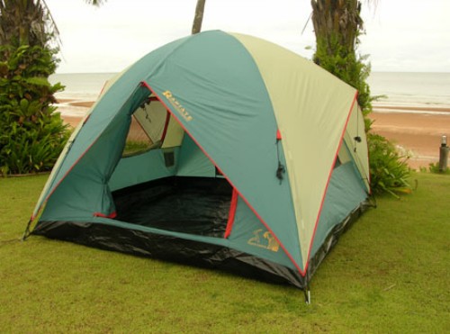 รายละเอียด (Detail) : เป็นเต็นท์ทรงโดม 2 ประตู 2 หน้าต่าง ผ้าไนล่อน 210T กันน้ำ 2,000 mm.