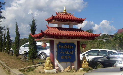 "บ้านสันติชน" ชุมชนของคนรักสันติ หมู่บ้านของชาวจีนยูนนานอพยพ ในพื้นที่หมู่ 5 ต.เวียงใต้ อ.ปาย จ.แม่ฮ่องสอน ส่วนใหญ่เป็นอดีตทหารจีน สังกัดกองพล 93 ภายใต้การนำของ "นายพลต้วน" ซึ่งอพยพเคลื่อนย้ายผู้คนเข้าประเทศไทย หลังเปลี่ยนแปลงการปกครองในจีนแผ่นดินใหญ่ตั้งแต่ปีพ.ศ.2493 ประมาณปีพ.ศ.2518 มีชาวจีนครอบครัวหนึ่ง อพยพมาจากบ้านผีลู ต.แม่นาเติง อ.ปาย เพื่อหาทำเลตั้งบ้านเรือนใหม่ เมื่อมาถึงบริเวณที่ตั้งหมู่บ้านในปัจจุบัน พบว่ามีขุนเขาสลับซับซ้อนอยู่ทางด้านหลัง และมีสายน้ำโอบล้อมโดยรอบ โดยภูเขาทอดยาวมาจากแดนไกล แสดงถึงกำลังหนุนส่งที่มีความเข้มแข็งโอบอุ้มแผ่นดินไว้ เปรียบเหมือนมีพญามังกรคอยปกป้อง คุ้มครอง ในขณะที่สายน้ำเป็นเหมือนเส้นเลือดที่หล่อเลี้ยงให้มังกรมีชีวิต หากน้ำดีจะส่งผลให้มังกรแข็งแรง ส่งพลังต่อลูกหลานสืบไป ตรงตามหลัก "ฟงซุ่ย" ในภาษาจีนยูนนาน หรือที่คนทั่วไปรู้จักในชื่อ "ฮวงจุ้ย" ในภาษาจีนแต้จิ๋ว เป็นศาสตร์การตั้งเมืองและบ้านเรือน ในแบบโบราณของจีนที่มีมานานกว่า 2,000 ปี ด้วยการอ้างอิงถึงหลักของธรรมชาติ ทิศทางลม สายน้ำ เพื่อความร่มเย็น และความเจริญรุ่งเรืองของผู้ที่อาศัยอยู่