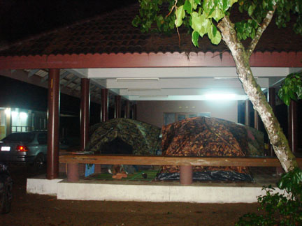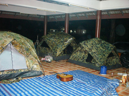 คำตอบที่ 9 ชะตากรรมถูกกับฝนเหลือเกินครับพี่น้อง เวลา 17.30 น.ท้องฟ้ามืดครึ้มฝนตกลงมาอย่างหนัก ต้องย้ายเต็นท์ 5 หลังไปในศาลา (วัยรุ่นเซ็ง)