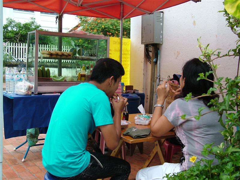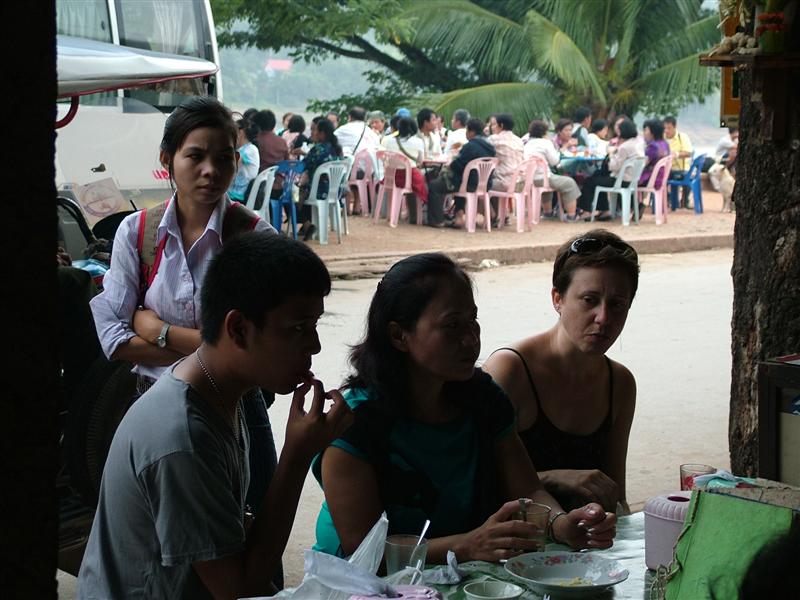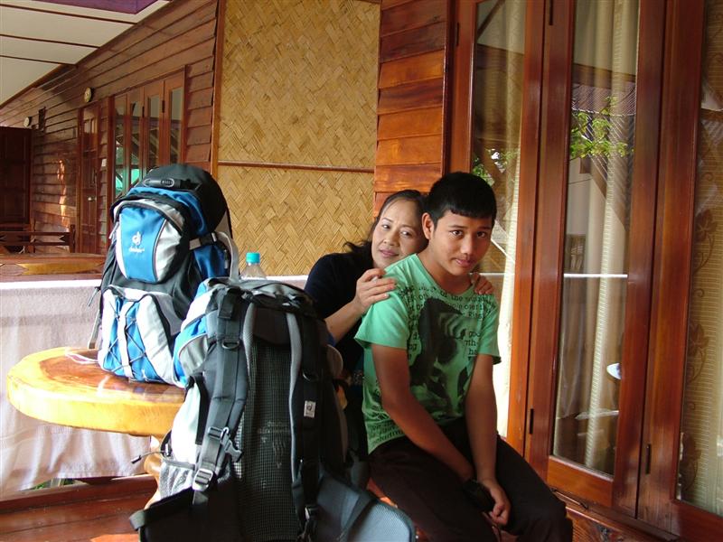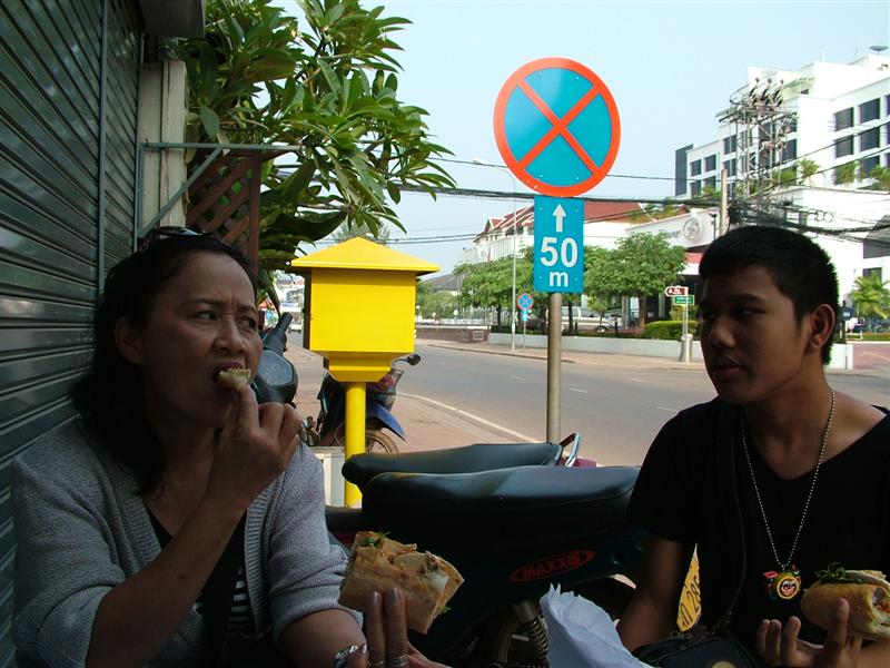 ลูกปิดเทอมแฟนชวนไปเที่ยวลาวกันดีไหม แบกเป้ไปก็ได้ ตอนนี้ลูกชายคนเล็กยังยอมเที่ยวด้วยเดี๋ยวอีก2-3ปีเขาก็ไปเที่ยวกับเพื่อนแบบคนโต ตอนนี้ยังลากแกมบังคับให้ไปได้ นึกในใจทำเป็นวัยรุ่นแบกเป้เที่ยว ไม่ได้ดูวัยตัวเองกันเลย ไม่อยากขัดใจ ไปก็ไปไม่ใช่กลัว แค่เกรงใจเท่านั้น ลองหาข้อมูลในบอร์ดท่องเที่ยวของ pantip ดูวันศุกร์ที่9ต.ค.ออกเดินทางประมาณ20.30โดยขับรถไปถึงหนองคายประมาณ4.45 เลยขับวนเข้าตลาดหากาแฟกิน เข้าปั๊มล้างหน้าแปรงฟันเกือบ 7โมงถึงขับรถไปจอดที่รับฝากจอดรถอยู่ใกล้ๆตม.ไทย คิดค่าจอดวันละ100บาทถ้าจอดหลายวัน วันละ80บาทมีหลังคาให้เรียบร้อย ถึงเวลาต้องแบกเป้กันแล้วของใครของมัน โอ๊ว.. แบกไกลมากๆตั้ง70เมตรมั้งเพื่อไปขึ้นรถสกายแลป(ก็สามล้อนั่นแหละ) ที่ทางที่รับฝากรถบริการรับไปส่งยังตม.ฝั่งไทยฟรี จากที่รับฝากถึงตม.ประมาน300-400เมตรแล้วจะแบกทำไมวะก็หิ้วเอาก็ได้.