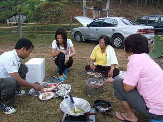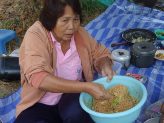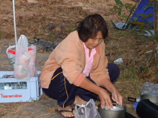 คำตอบที่ 6 แม่ครัวประจำกลุ่มกำลังเตรียมอาหารเช้า