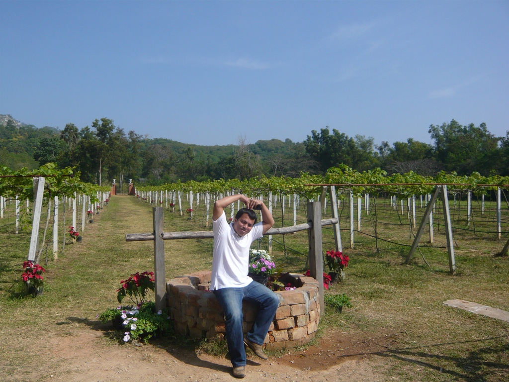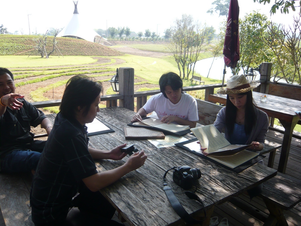 คำตอบที่ 12 เสร็จแล้ว เราก็เลยไป พีบี วิลเลจ เป็นร้านอาหาร อากาศ โดยล้อมรอบด้วย สวนองุ่น