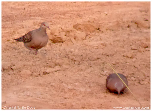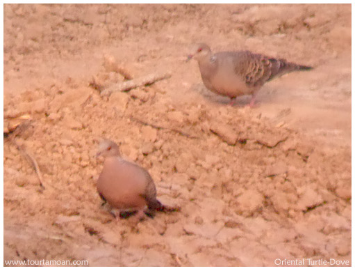 บ่ายวันแรก จรดๆจ้องๆจะถ่ายนั่นถ่ายนี่ก็ไม่ได้เรื่องเสียที ประสามือใหม่หัดถ่ายนะครับ จนกระทั่งมองย้อนกลับไปตามทางที่เดินผ่านมาแล้ว อยู่คนละยอดเนินโน่นห่างไปร่วม 100 เมตรมีนกเขาคู่หนึ่งลงพื้นมาเดินหากิน พอดีกล้องสโคปประกอบคูลพิกซ์อยู่แล้ว ก็เลยเล็งถ่ายไว้ ดีกว่าอยู่เปล่าๆ