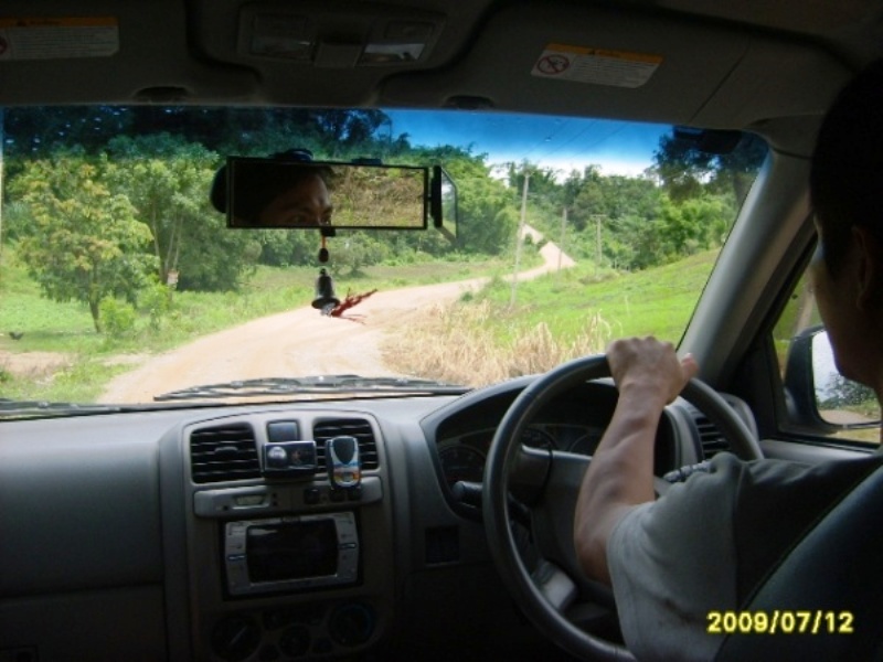 (โดยสังเกตุจากพระพุทธรูปสีขาวที่อยู่บริเวณทางแยก) เดินทางต่อไปอีก 15 กิโลเมตร