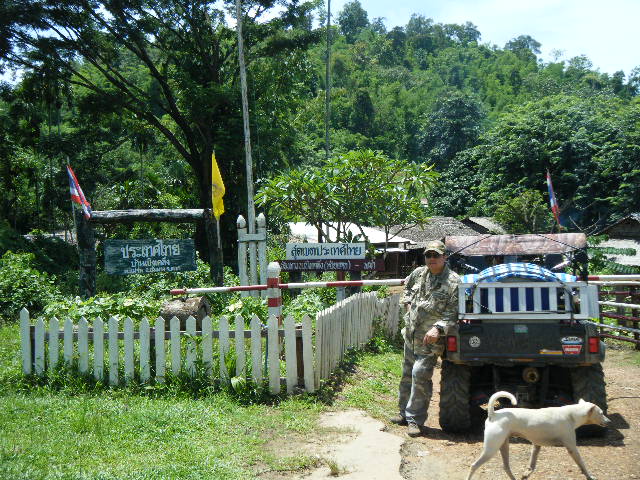 พวกเราต้องลงจากรถแล้วเดินออกมายืนอยู่ข้างรถ โดยทหารกระเหรี่ยงเอาปืนจ่อพวกเราทั้งหมด6คน6กระบอกเอาไว้เหมือนกับนักโทษ หากพวกเราตุกติกก็คงลั่นกระสุนทันที แล้วก็ทำการค้นรถของพวกเรา พอเห็นว่าพวกเรามาอย่างมิตรในรถไม่ได้มีอะไรแอบแฝงมา ก็จึงอนุญาตให้เราเข้าพบนายพลส่วยชัยได้ (ทั้งๆที่เราได้มีการประสานงานมาก่อนแล้วว่าจะขอเข้าพบท่านนายพล ก็คงเป็นไปตามมาตรการของทหารป่าขั้นสูงสุด