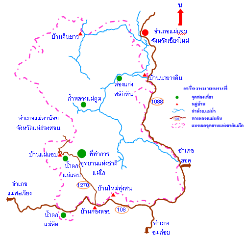 น้องเsuper_mใช้เส้นทางเชียงใหม่ - ฮอด (ทางหลวงหมายเลข 108) ระยะทาง 89 กิโลเมตร แล้วเลี้ยวขวาไปตามเส้นทางสายฮอด - แม่สะเรียง (ทางหลวงหมายเลข 108) ระยะทาง 54 กิโลเมตร ถึงบ้านกองลอย แล้วเลี้ยวขวาไปตามเส้นทางบ้านกองลอย - บ้านแม่โถ (ทางหลวงหมายเลข 1270) ระยะทาง 16 กิโลเมตร เลี้ยวขวาเข้าที่ทำการอุทยานฯ ระยะทาง 500 เมตร