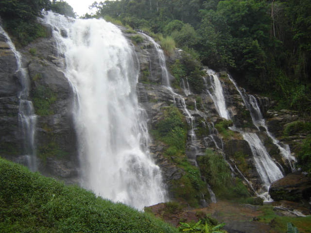 คำตอบที่ 18 พอฟ้าสาง ผมเพิ่งเห็นว่าเต้นท์เปียกแฉะทั้งหลังเลย งานนี้ต้องล้างเต้นท์และเอาตากแดดก่อนครับ กว่าจะได้ลงจากดอยอินทนนท์ก็ เกือบเที่ยงวันแล้วครับ ...จากนั้นก็ไม่พลาดที่จะแวะที่นี่ครับ "น้ำตกวชิรธาร" ครับ