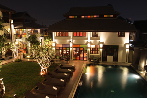 ตัวโรงแรมเป็นอาคาร 3 ชั้น และ 2 ชั้น โอบล้อมพื้นที่ตรงกลาง ที่มีสระว่ายน้ำ ตัดกับสีเขียวของสนามหญ้า ให้ความรู้สึกผ่อนคลายสายตา