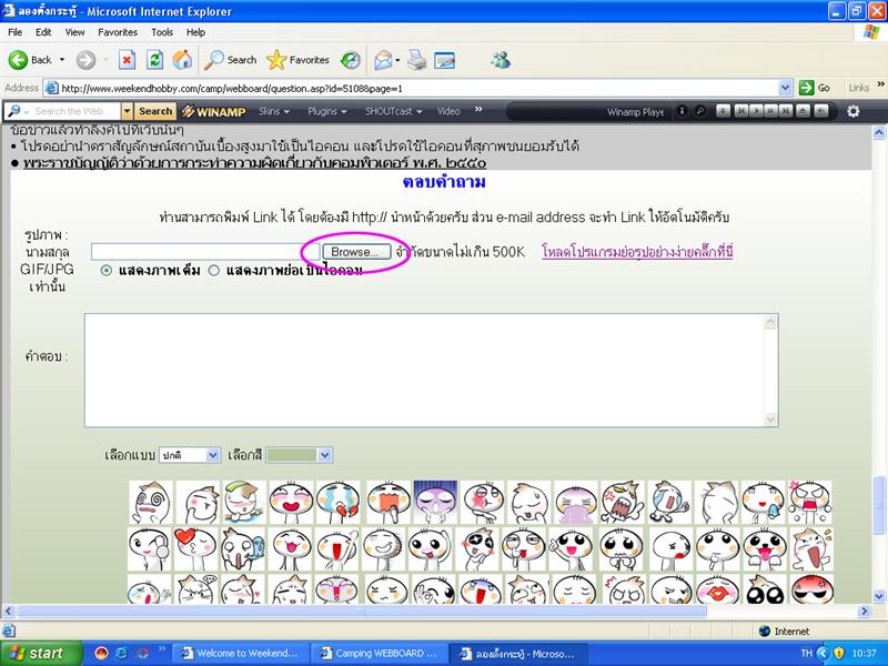 คำตอบที่ 4 เมื่อได้รูปที่เราย่อ ไว้เรียบร้อยแล้ว............ คลิ๊กที่ Browse...... แล้วไปที่ รูปที่เราเตียมไว้..........