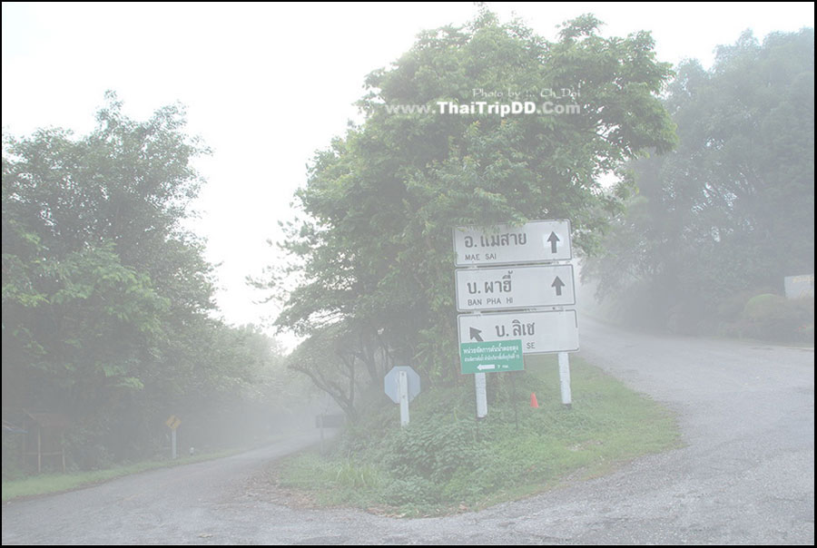 ไปแม่สายแยกขวามือชี้ไปบ้านลิเซแยกซ้ายมือ