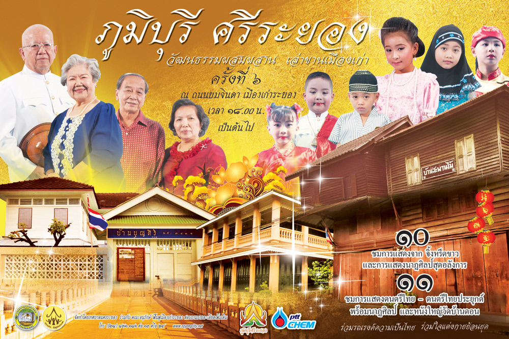 เทศบาลนครระยองร่วมกับชมรมอนุรักษ์เมืองเก่าระยอง และชุมชนในเขตเทศบาลนครระยอง ขอเชิญชวนพี่น้องชาวจังหวัดระยองและผู้ที่สนใจ เที่ยวชมงาน “ภูมิบุรี ศรีระยอง ครั้งที่ 6″ ประจำปี 2553 วัฒนธรรมผสมผสาน เล่าขานเมืองเก่า ถนนผสมผสานแห่งเรื่องราว จากรุ่นสู่รุ่น ซึ่งงานภูมิบุรี ศรีระยองนี้ จัดขึ้นเพื่อเป็นการส่งเสริมและอนุรักษ์วัฒนธรรม ประเพณีและวัฒนธรรมอันดีงามของเมืองระยองให้คงอยู่สืบไป และเป็นงานประเพณีของระยองอีกงานหนึ่งที่ได้รับการตอบรับอย่างดีตลอดมา ณ ถนนยมจินดา เมืองเก่าระยอง อำเภอเมือง จังหวัดระยอง