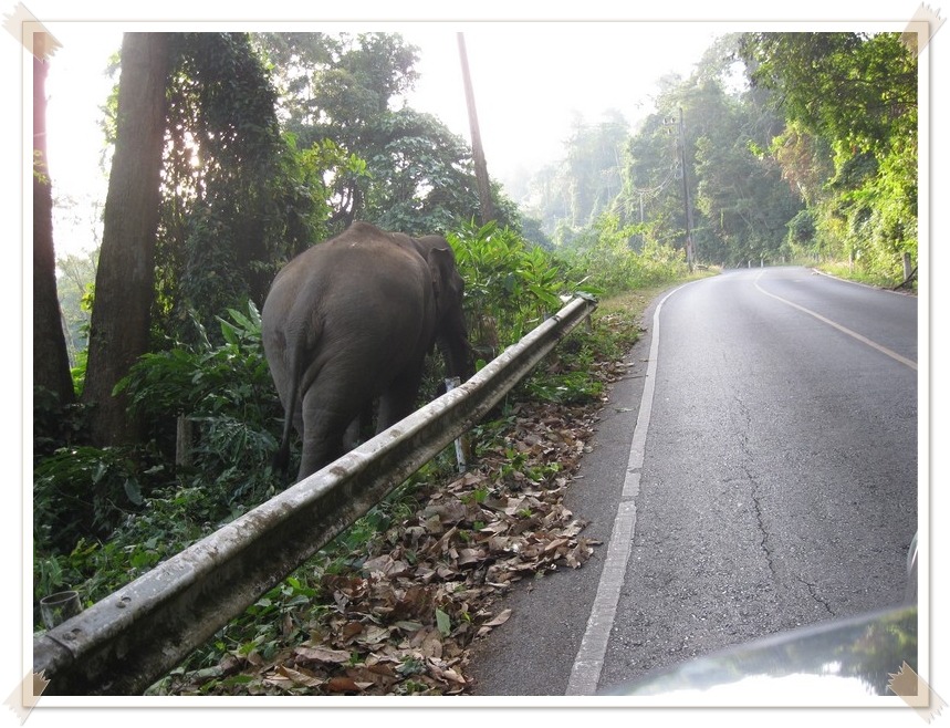คำตอบที่ 5 ...วันนี้เขามาตัวเดียว ก็ไม่คิด ไม่ฝัน ว่าจะได้เจอ ช้างป่าเป็นครั้งแรก ตื่นเต้นมาก ... .......มาดูหน้าเข้าเต็มๆ นั้นแน่ แอบหลังต้นไม้อีกนิ....