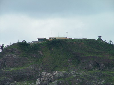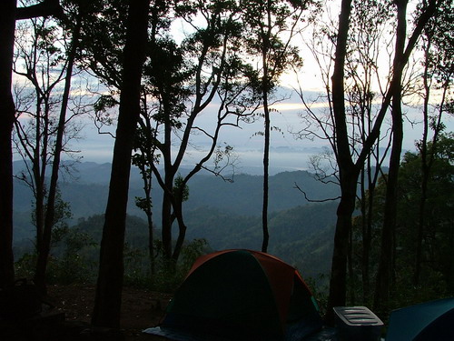 คืนแรกนอนที่ อช. กางเต๊นท์ที่เนินกูดดอย เป็นจุดชมวิว เขื่อนเขาแหลม ความจริงนอนซ้ำก็ไม่เป็นไรเพราะที่เที่ยวไปกลับได้สบาย ไม่ห่างกันมาก หรือจะนอนคืนที่ ที่หน่วยทหารก็ได้ เลย อช. ไปก่อนเข้าบ้านอีต่องประมาณ 2-3 กม. แยกทางซ้ายมือ มีป้ายเชิญชวนอยู่ เป็นจุดที่ตั้งของหน่วยทหารไทยระดับสูงกว่า เนินเสาธง เจ้าหน้าที่ใจดีกับหมาน่ารักหลายตัวเลย กลางวันลมแรงมากหนาวด้วย