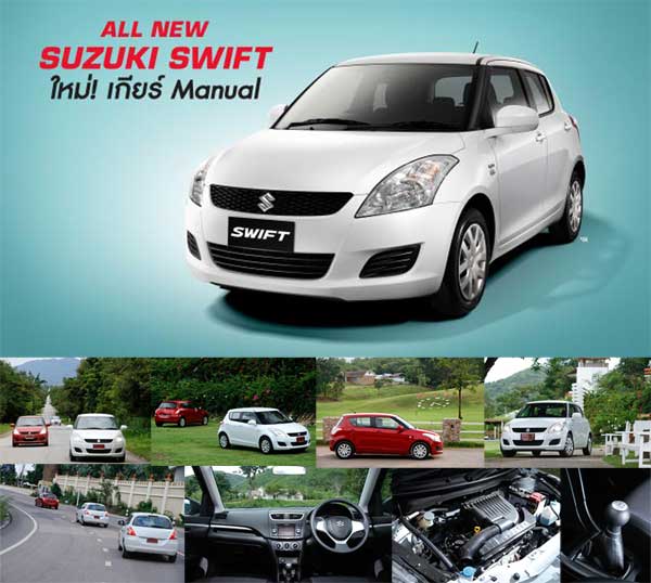 กรุงเทพฯ 6 สิงหาคม 2555 บริษัท ซูซูกิ มอเตอร์ (ประเทศไทย) จำกัด เติมความเร้าใจทุกประสาทสัมผัสอีกครั้ง หลังจากที่ได้แนะนำ All New Suzuki Swift 1.25 ลิตร รุ่นเกียร์อัตโนมัติ CVT ตั้งแต่ช่วงต้นปี และได้รับการตอบรับที่ดีอย่างท่วมท้นเกินความคาดหมาย ด้วยยอดขายไปแล้วกว่า 5,000 คันจนถึงปัจจุบัน และวันนี้ ซูซูกิพร้อมตอบความต้องการของตลาดด้วย New Suzuki Swift รุ่นเกียร์ธรรมดา ที่มาพร้อมกับสุดยอดดีไซน์สไตล์สปอร์ตแฟชั่น ควบคู่กับสมรรถนะความปลอดภัย ให้ความมั่นใจทุกการขับขี่ และให้ความประหยัดน้ำมันเป็นเยี่ยม โดยเคาะราคาเริ่มต้นที่ 429,000 บาท เป็นการเพิ่มทางเลือกให้กับผู้ที่ชื่นชอบการขับขี่แบบเข้าถึงทุกสัมผัส ด้วยอำนาจการควบคุมรถที่มากกว่า ขับเคลื่อนด้วยเครื่องยนต์ 1.25 ลิตร 4 สูบ 16 วาล์ว 91 แรงม้า พร้อมระบบวาล์วแปรผันทั้งไอดีและไอเสีย เทคโนโลยีและวิศวกรรมล่าสุดจากซูซูกิ ชูความเป็นผู้นำด้านวิศวกรรมการออกแบบ รูปโฉมโฉบเฉี่ยวปราดเปรียว โครงสร้างและตัวถังใหม่เน้นความปลอดภัย ประหยัดน้ำมันกว่า 20 กม./ลิตร เป็นมิตรกับสิ่งแวดล้อม ที่สุดแห่งการสร้างสรรค์คอมแพ็คคาร์ของโลก พร้อมลุยตลาดอีโคคาร์ที่กำลังร้อนแรง ตั้งเป้ายอดขาย 2,000 คันในสิ้นปี