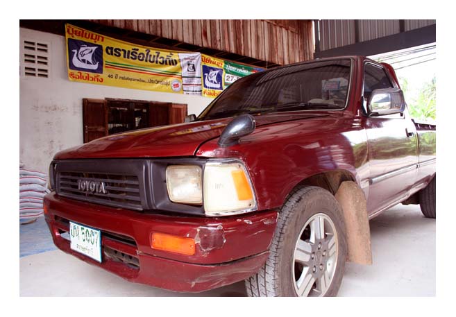 เจ้า106คู่ใจ ก็ยังคงสภาพเดิมอยู่ยังงี้แหละครับ ใจจริงก็อยากยกสูงกว่านี้ซักนิด ยัดยาง33 วิ๊นซ์ไฟฟ้าไว้ช่วยตัวเองซักตัว สนอร์เกิ้ลซักชุด แต่ผมยังเรียนอยู่เลยคร้าบผม...ประกอบกับทางบ้านเค้าไม่ค่อยเห็นด้วยเท่าไหร่ เพราะมันเป็นรถบรรทุกปาล์มในสวนของผมด้วยอ่ะคับ ก็เลยทนขับสภาพแบบนี้ไปพลางๆก่อน เรียนจบ ทำงาน เก็บตังได้เมื่อไหร่ คงได้เป็นออฟโรดเต็มตัวกะเค้าซักที นี่เป็นความฝันลึกๆของผมครับ.....