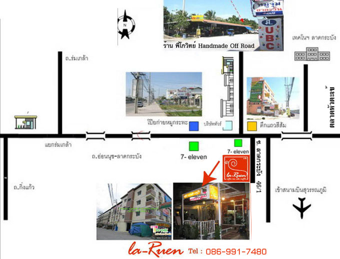 ชื่อร้าน ลา-รื่น ครับ อยู่ซอยลาดกระบัง 46/1 ก่อนถึงทางแยกเข้าสนามบิน อาคารกฤตยาเฮ้าส์