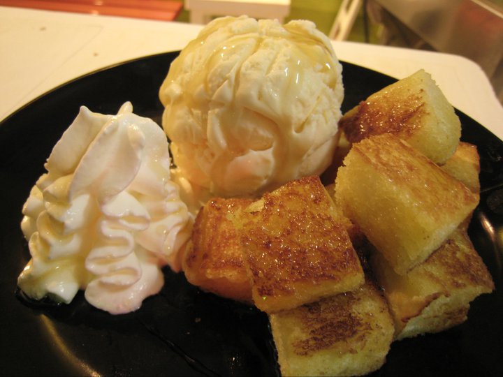 ของหวานสำหรับสาว ๆ และเด็ก ๆ ....ฮันนี่โทสต์ ขนมปังก้อนสี่เหลี่ยมรสนุ่มชุ่มเนย เสริฟพร้อมวิปครีมไอศครีม และน้ำผึ้ง