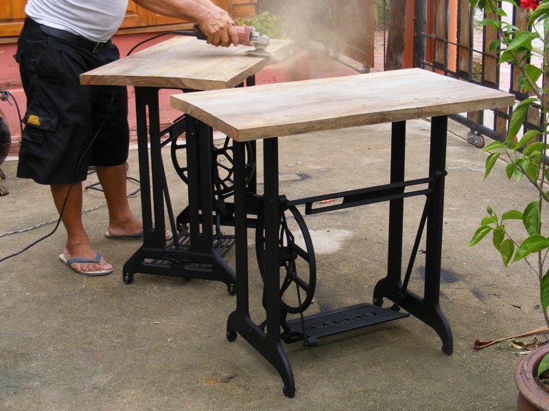 ได้มาอีกสองตัวครับ จัดการทำสีเองตัดไม้ ( ตะเคียน ) หน้ากว้าง 50 cm. วางด้าน Top