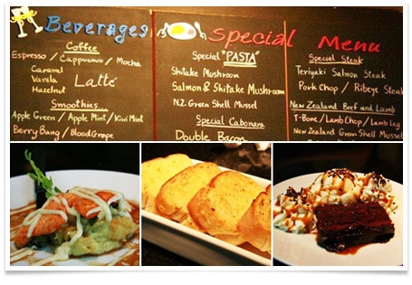 เมนูอาหารผ่านการคัดสรรมาเป็นพิเศษ เพื่อสร้างความประทับใจและอิ่มเอมใจ อาทิเช่น เครปสลัดยำแซลม่อน , คาโบนาร่า พิซซ่า ,ดับเบิลเบคอนคาโบนาร่า , พิซซ่าพาร์มาแฮม ,เทอริยากิแซลมอนบะหมี่หยก หรือแม้กระทั่งเมนูใหม่ล่าสุด " French Crepe" ซึ่งทำด้วยแป้งสูตรพิเศษ บางแต่นุ่ม สอดไส้ด้วย Crispy Bacon, Spinach, Mushroom, Mozzella Cheese แต่งหน้าด้วยไอโอรี่ซอส