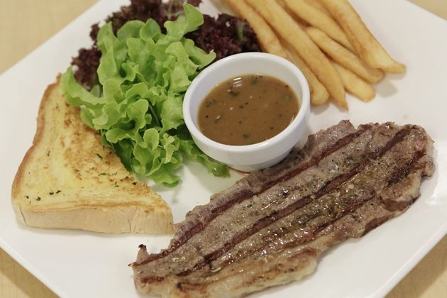 ส่วนเมนูเนื้อขอแนะนำสเต็กเนื้อวากิว ( Wagyu Steak ) นุ่มที่สุด เป็นสุดยอดเนื้อของญี่ปุ่น และเทนเดอร์ลอยด์สเต็ก ( Tenderloin Steak ) ที่นุ่มและอร่อยมาก ๆ สำหรับแฟนพันธุ์แท้สเต็กที่ร้าน ก็มีให้เลือกทั้ง Thai Beef และ Premium Beef ซึ่งเป็นเนื้อนำเข้า ต้องมาชิมด้วยตัวเองแล้วจะรู้ว่าสเต็กดี ๆ นั้นรสชาติเป็นอย่างไร ทุกเมนูสามารถเลือกส่วนประกอบในจานได้ตามชอบ ตามใจกันขนาดนี้คงต้องมีครั้งต่อไปและต่อไป