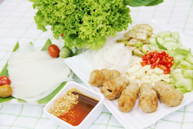 สลัดเวียดนาม ( vietnamese salad ) ก็เป็นอีกเมนูที่เด็ดดวงไม่แพ้กัน เครื่องเคราจะห่อมาเป็นคำ ทั้งกุ้ง หมูยอ ไข่ตัดเป็นแท่ง ห่อด้วยผักกาดหอมและมัดรวมกันด้วยต้นหอมคล้ายซูชิ ทานกับน้ำสลัดที่ปรุงมาเป็นพิเศษ ได้รสชาติดีทีเดียว