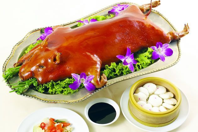 ที่ขาดไม่ได้ คือ หมูหันฮ่องกง หน้าตาจะแตกต่างจากหมูหันที่เราเคยเห็นทั่วไปที่หนังจะมันย่อง แต่เมนูนี้สูตรฮ่องกงแท้ หนังและเนื้อจะแห้งกรอบรวมกันเป็นเนื้อเดียว และมีความหอมนุ่มในคำเดียว ทานได้ทั้งตัว เสริฟมาพร้อมหมั่นโถวชิ้นเล็ก ๆ กลมแบนนุ่มอร่อย เมื่อคีบชิ้นหมู ราดน้ำซอส ส่งเข้าปาก ตามด้วยหมั่นโถวพอดีคำและแตงกวา รสชาติต้องยกนิ้วให้ทีเดียว