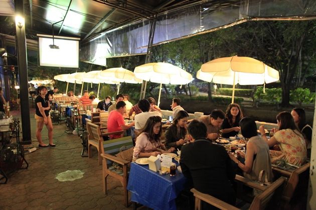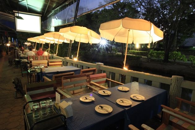 บอกเสียก่อนว่าร้านนี้มี 2 โซน 2 บรรยากาศ ให้เลือกนั่งกันตามชอบใจเหมือนมีสองร้านอยู่ติดกัน ใครมีเสียงเพลงในหัวใจก็เลือกนั่งโซนแรก มีแบนด์เร้าใจรออยู่ แต่ถ้าชอบบรรยากาศสบายใจ มีเพลงเบา ๆ บรรเลงก็เดินต่อไปโซน 2 ด้านใน แต่ทั้งสองโซนมีบรรยากาศริมน้ำไว้ต้อนรับทุกท่าน
