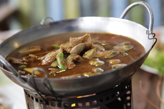 แกงป่าเนื้อกวาง ลืมบอกไปว่าอาหารที่ รีวา วารี นี้ไม่มีเมนูเนื้อวัว เพราะหลายคนงดเว้น แต่จะมีเนื้ออื่นทดแทนให้ เช่น เนื้อกวาง อร่อย นุ่ม และไม่เหนียวเลย ไม่ว่าจะเป็น เนื้อกวางแดดเดียว หรือแกงป่าเนื้อกวาง หมูแดดเดียว ก็เป็นจานที่ลูกค้าชอบสั่งกันมาก เพราะทำได้อร่อยเด็ด