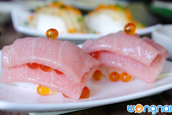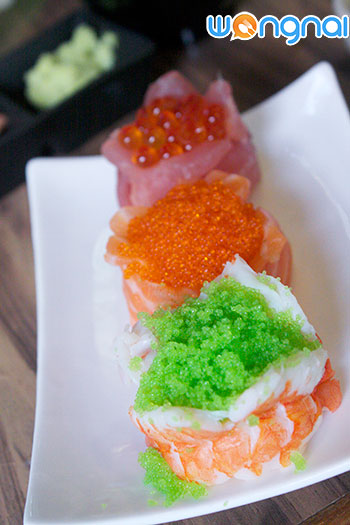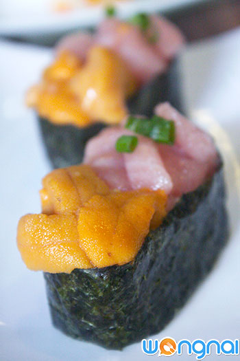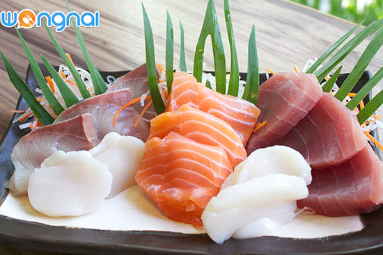 ปิดท้ายด้วย "Sashimi Set" (ราคา 990 บาท) ) ที่มีปลาฮามาจิ โฮตาเตะ (หอยเชลล์ญี่ปุ่น) ปลาทูน่า และปลาแซลมอนขิ้นโต เต็มปากเต็มคำ สะใจคนชอบกินปลาดิบ แล้วจบมื้อด้วยของหวานรสชาตินุ่มนวลอย่าง "โมจิ" ไส้ครีมบลูเบอร์รี่และสตรอเบอร์รี่ (ราคาชิ้นละ 95 บาท) ที่เป็นแป้งโมจิบางๆ ห่อไส้ครีมเนื้อเนียนละเอียดไว้ข้างใน ซึ่งไส้แบบครีมจะอร่อยกว่าแบบที่เป็นไอศกรีม เพราะว่าจะครีมจะนุ่มละมุนในปาก ไม่แข็งเกินไปแบบไอศกรีม