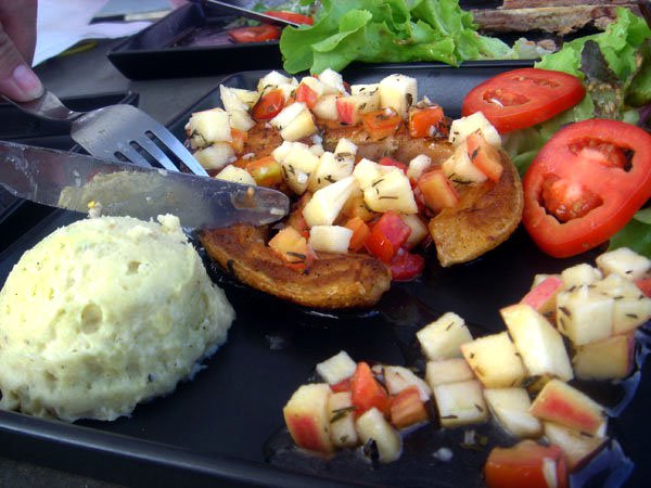 สเต๊กทุกจานเสริฟ พร้อมกับมันบดนุ่มลิ้น และก็สลัด (ผักกรอบและสดมาก น้ำสลัดรสชาติอร่อยสุดยอด)