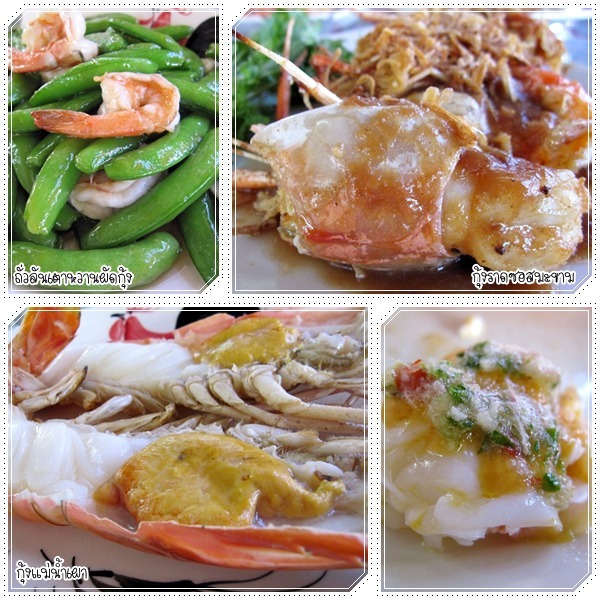 "กุ้งแม่น้ำ" ที่นี่สด เนื้อหวาน มันเยิ้ม(มาก) จิ้มน้ำจิ้มซีฟู้ดรสเข้มข้น อร่อยใช้ได้เลยครับ ... ""ถั่วลันเตาหวานผัดกุ้ง"" ถั่วลันเตา กรอบ อร่อย ไม่เหม็นเขียว ผัดรสชาติกลมกล่อม (จริงๆ กะว่าจะให้ผัดกับก้ามกุ้ง แต่หมดซะก่อน อดกินเลยอ่ะ!!!) สำหรับเมนูอื่นๆ ก็อร่อยไม่แพ้กัน ...