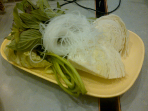 ในชุดก็มีพวก ผักต่างๆ ผักกาดขาว โหระพา วุ้นเส้น มาให้ด้วย