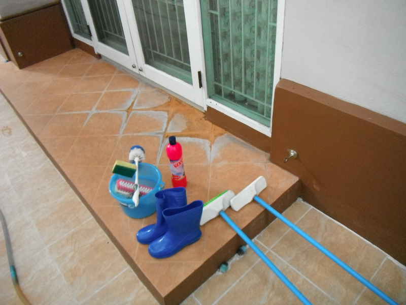 เป็นโชคดีที่ของผมที่ถมสนามหญ้าสูงกว่าถนน 1 เมตร แล้วมาปูกระเบื้องแทน ก่อนน้ำจะท่วมเพียง 20 วัน เลยทำความสะอาดไม่ยาก