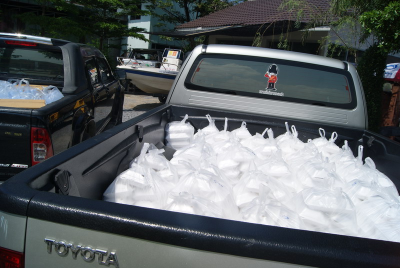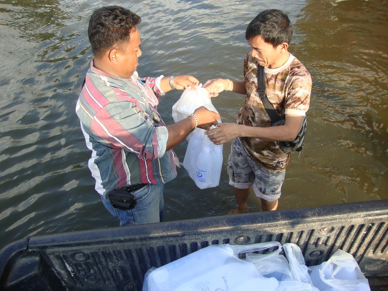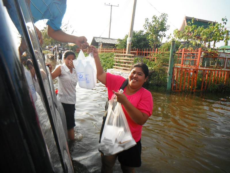 31/10/54 รับมอบน้ำดื่ม ข้าวกล่อง จากผู้บริจาค จาก อ.บางเลน นำส่งผู้ประสบภัยย่านริมคลองมหาสวัสดิ์
